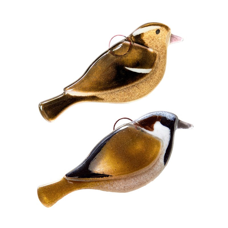 Et varmt og jordnært gråspurvepar i smukke naturfarver. De håndlavede glasdetaljer giver fuglene et venligt og hjemligt udtryk, som passer ind i alle boligstile. Gråspurvene er perfekte til dig, der ønsker et diskret og naturligt element i vinduet – eller en gave fyldt med varme og uhøjtidelig charme.