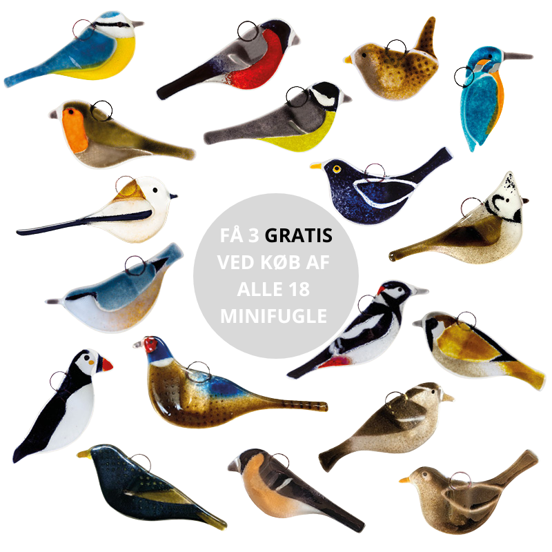 Når du køber hele pakken, får du 3 minifugle gratis - en oplagt måde at få hele fugleflokken til en ekstra god pris.
